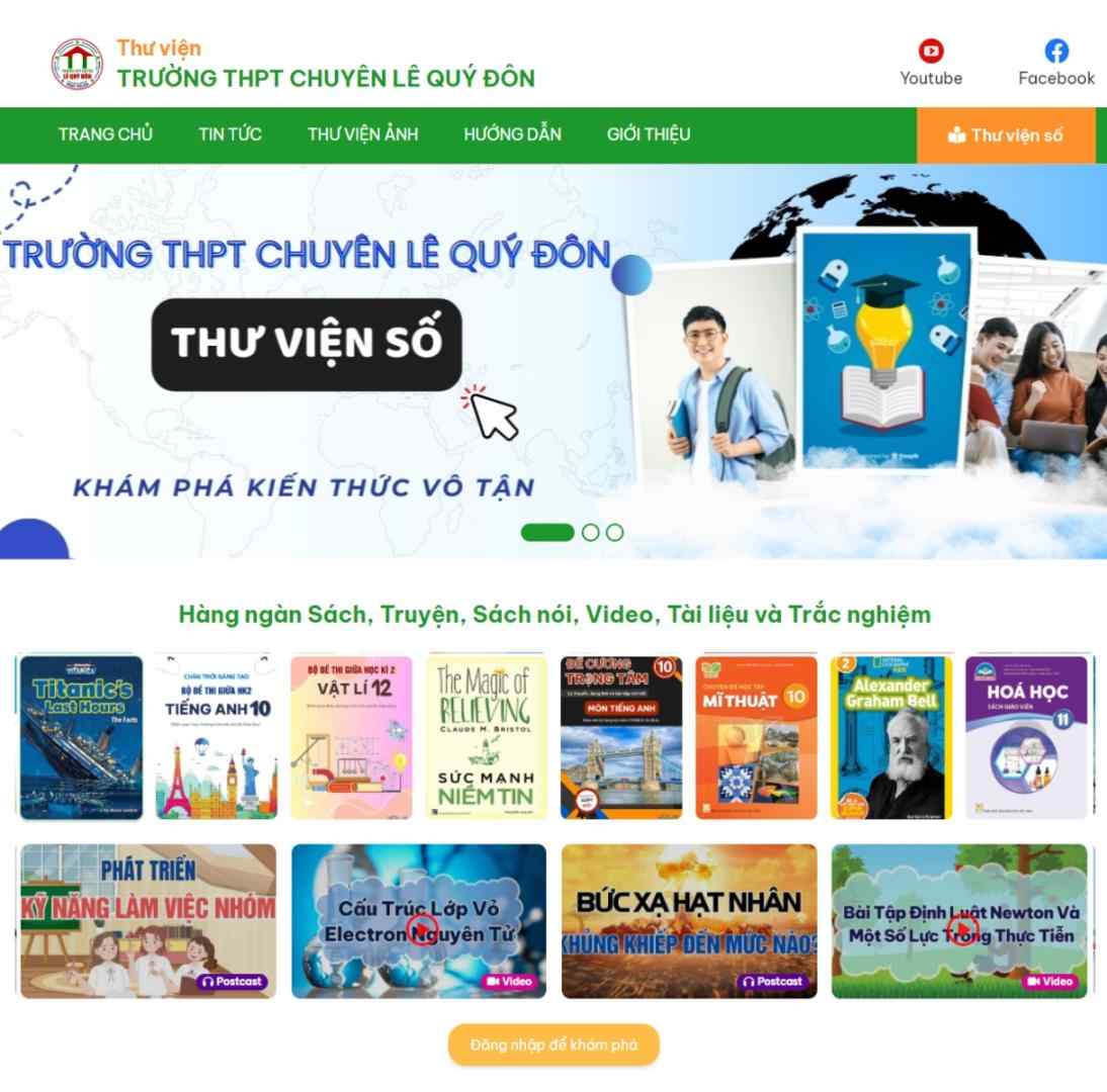Giao diện thân thiện: Thư viện số Trường THPT Chuyên Lê Quý Đôn có giao diện thư viện số hiện đại, tích hợp tên miền con và tài khoản đăng nhập của học sinh và giáo viên. Giao diện có thể được tùy chỉnh để phù hợp với nhu cầu cụ thể của từng thư viện số.